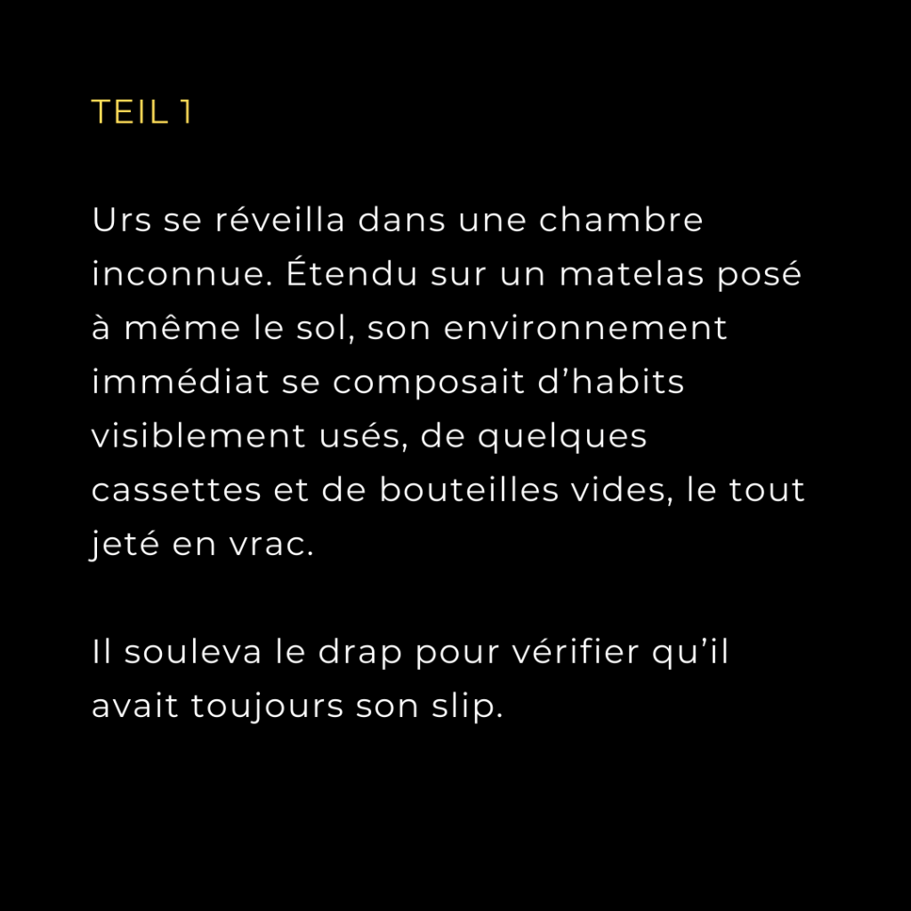 Urs et Uschi est un projet expérimental de feuilleton créé spécifiquement pour Instagram. Chaque semaine un nouvel épisode, chaque jour une partie de celui-ci. L’écriture suit un canevas qui évolue en fonction des pièges que me posent les internautes et auxquels je tente de répondre par la fiction. A travers ce dispositif, je teste des mécanismes d’écriture collaborative et calibrée pour le net.